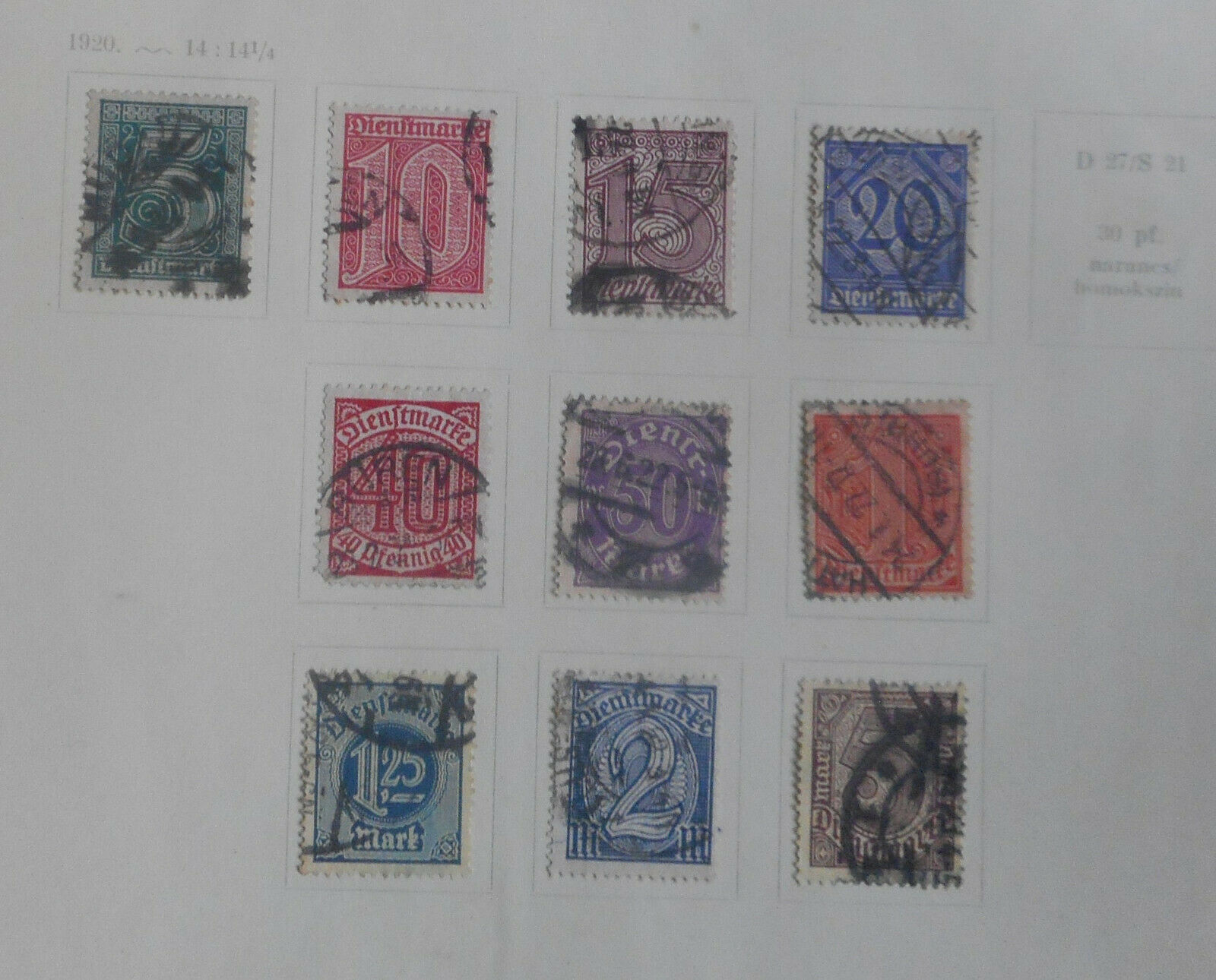 Germany 1920 Official Set missing No 21 Used Nice
