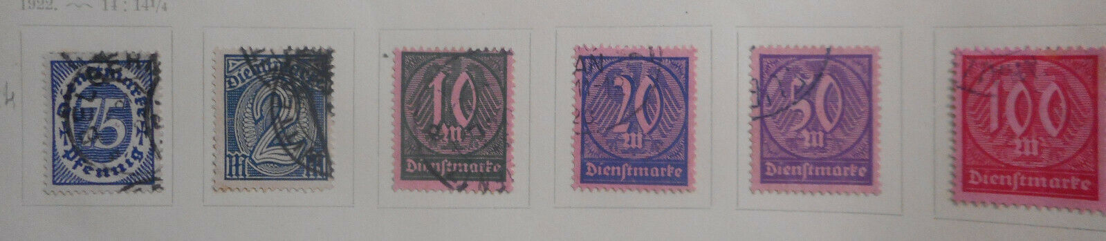 Germany 1922 Official Set 6 stamps Used Nice