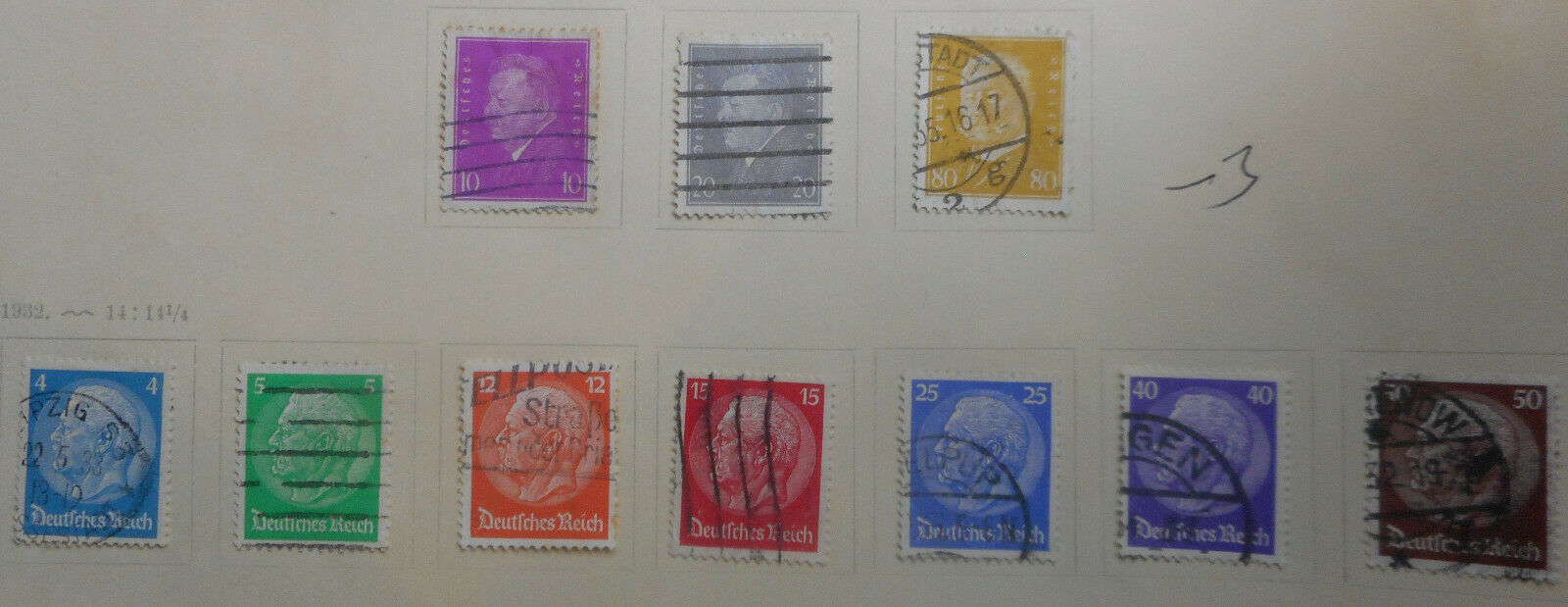 Germany 1932 redrawn Hindenburg Set 7 Used Nice