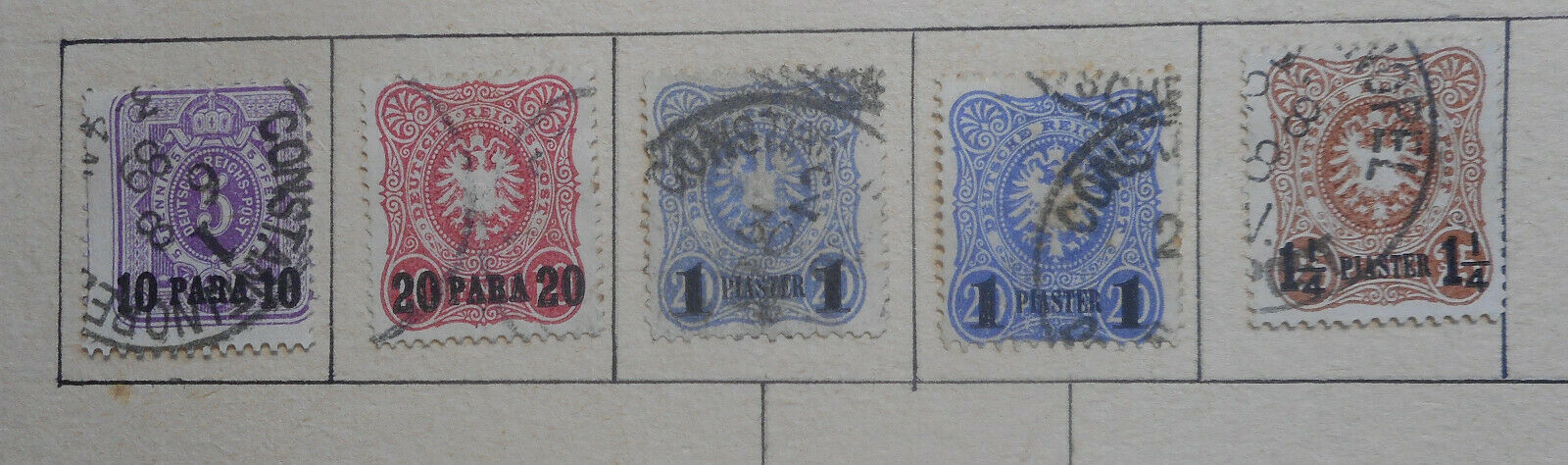 German PO in Turkey 1884 Values surcharged to1 1/4 Piaster 5 stamps Used