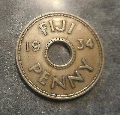 Fiji 1955 QEII Penny Coin NICE aUNC/UNC
