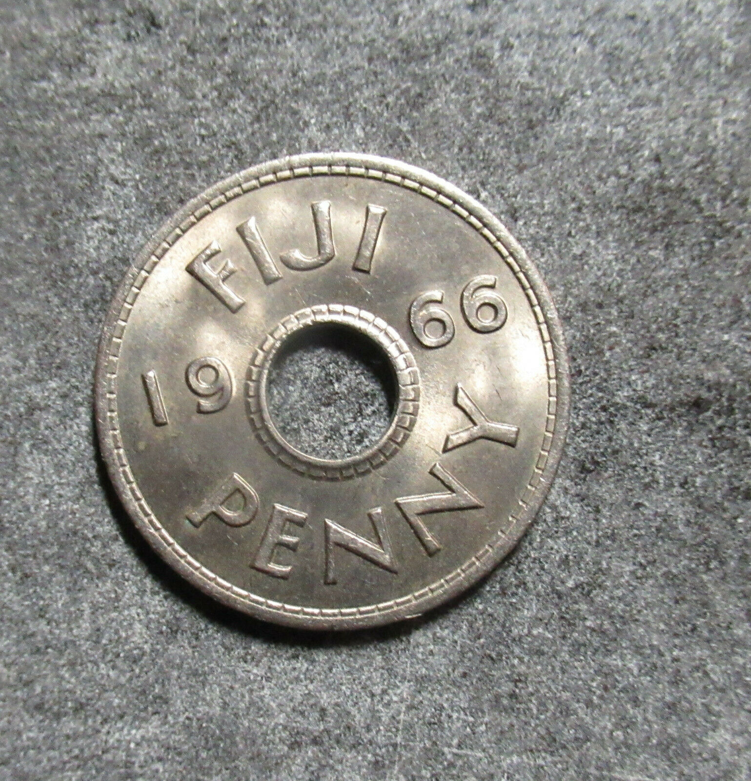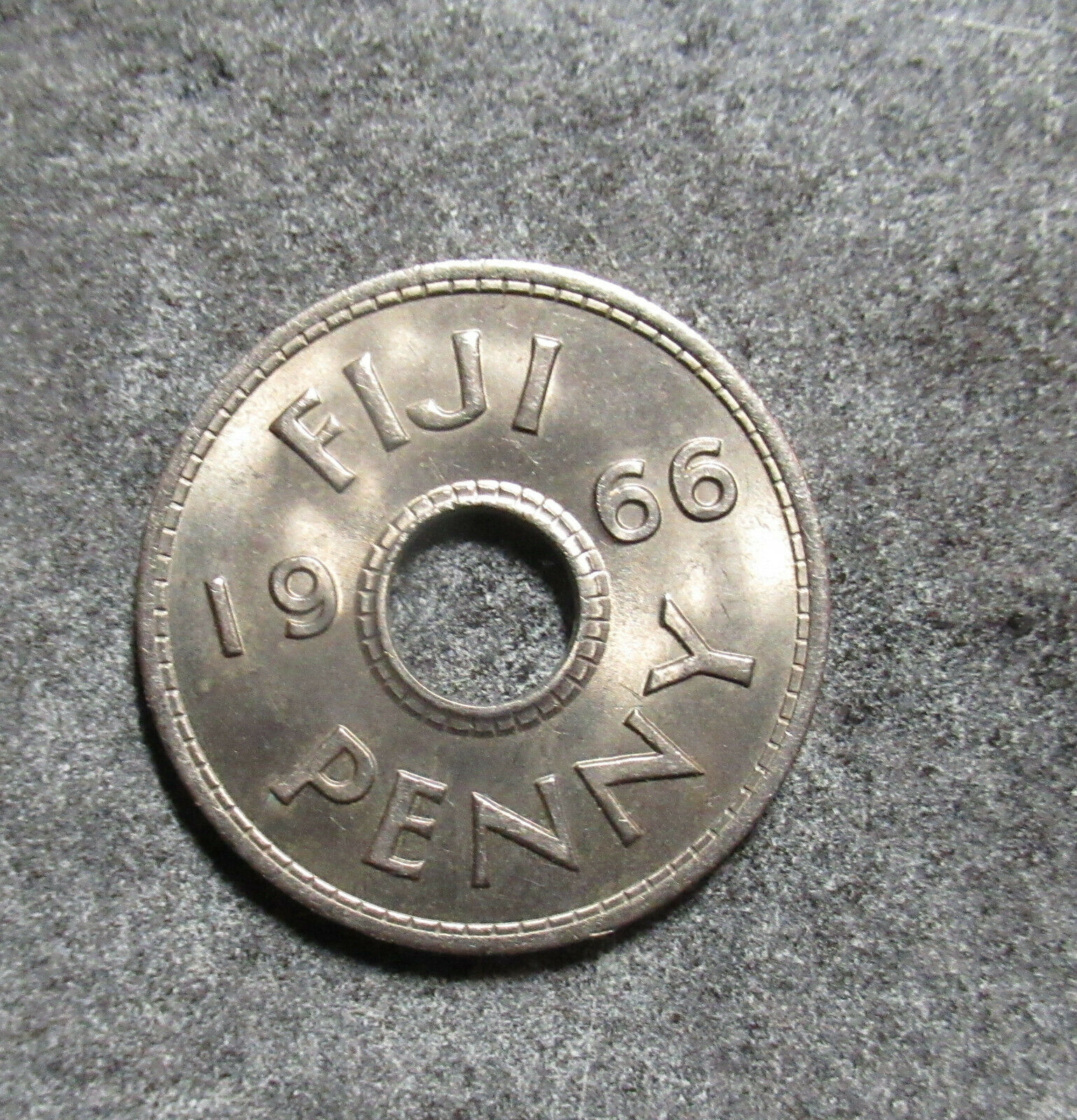 Fiji 1966 QEII Penny Coin NICE B/UNC