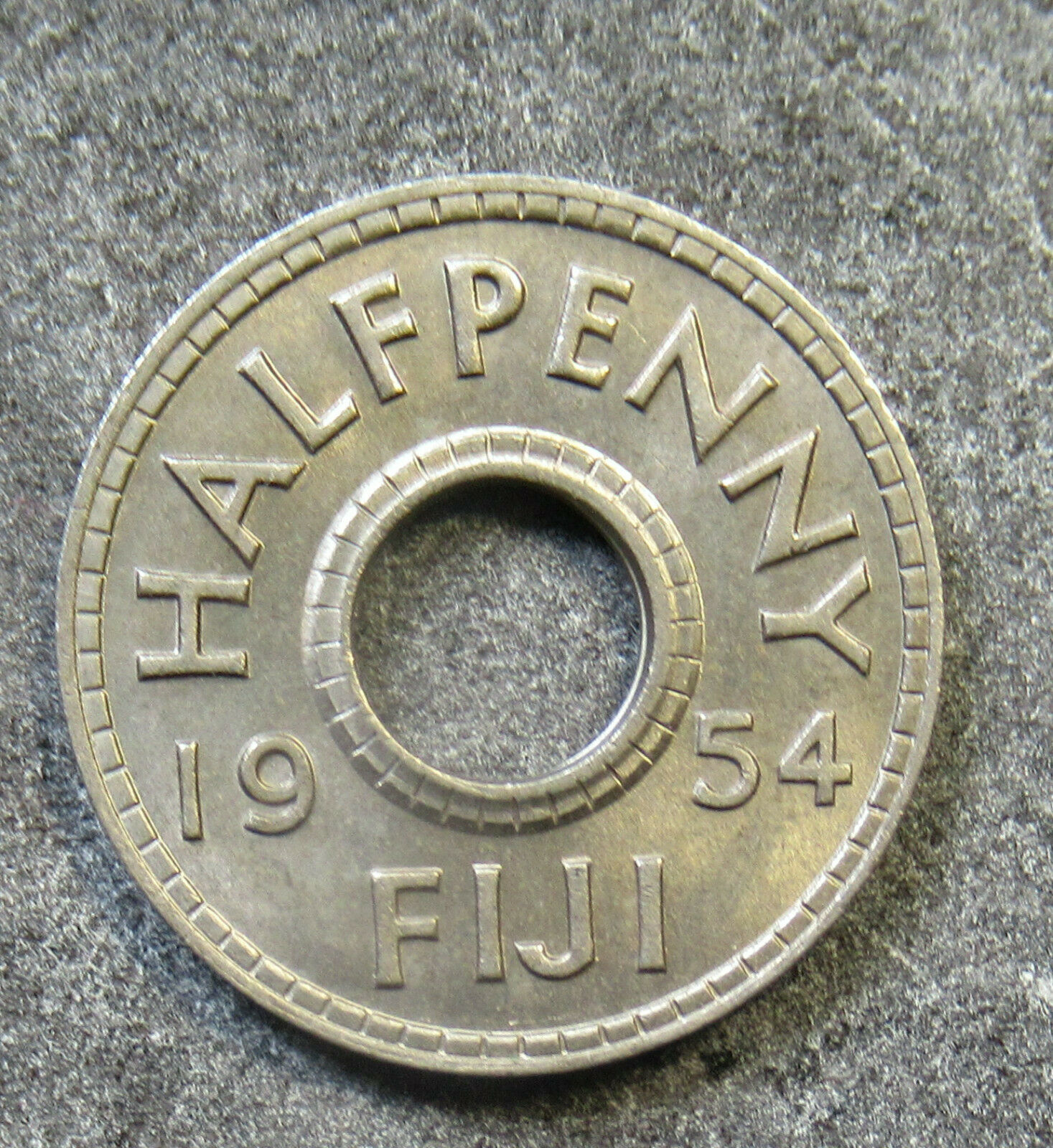 Fiji 1954 QEII Halfpenny Coin NICE BUNC