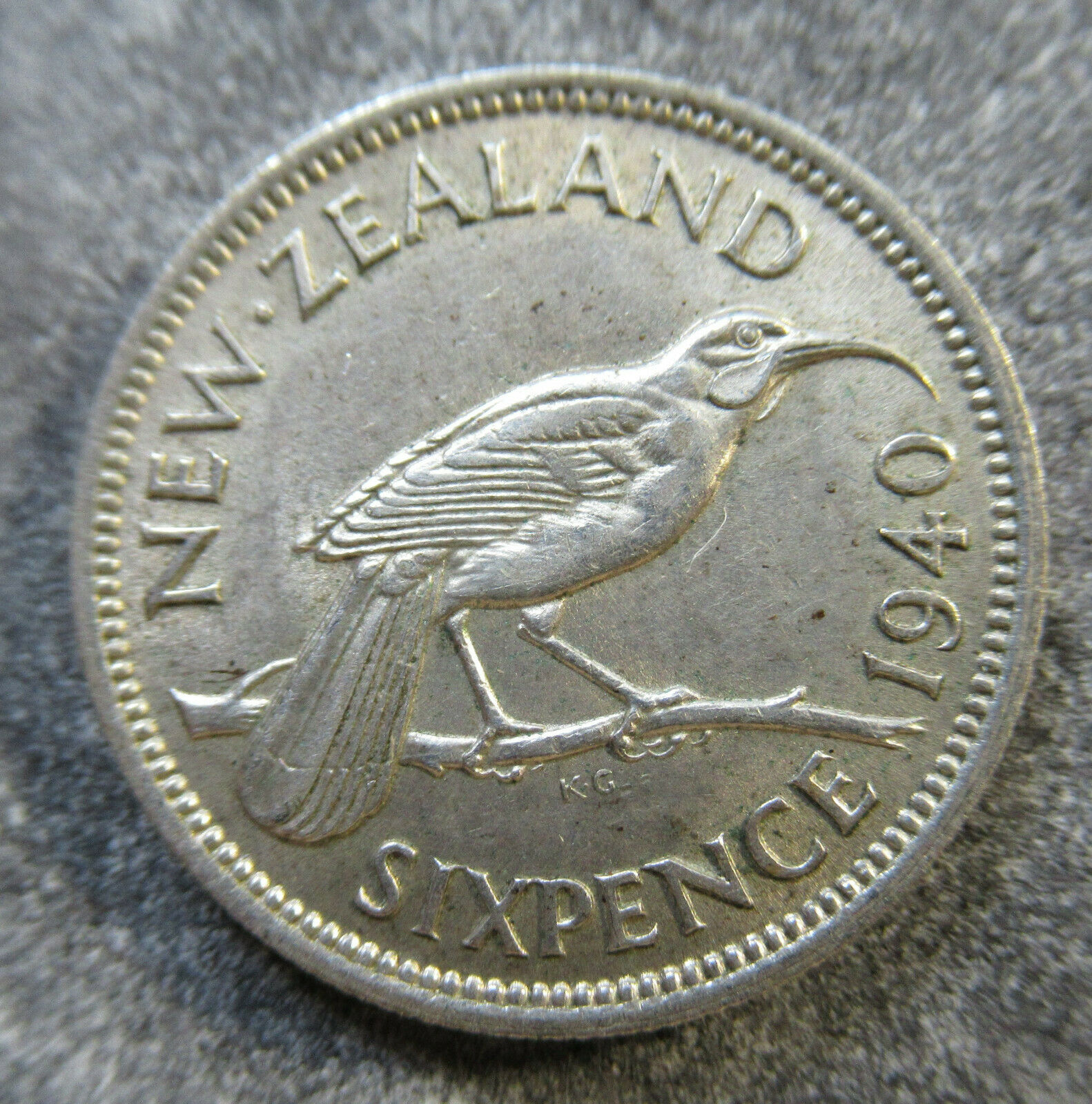 New Zealand 1940 KGVI Sixpence 6d Silver Coin XF/ aUNC Nice Mint Lustre