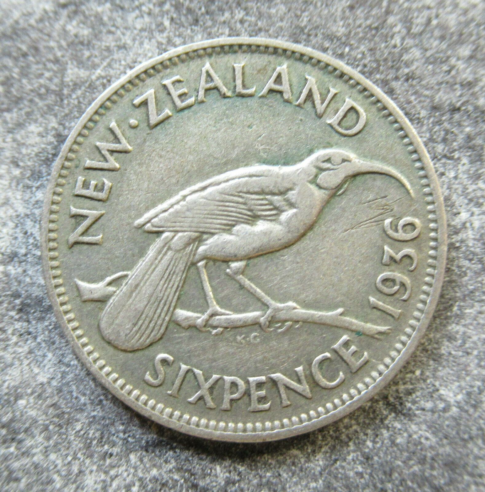 New Zealand 1936 KGV Sixpence 6d Silver Coin Nice Good Detail