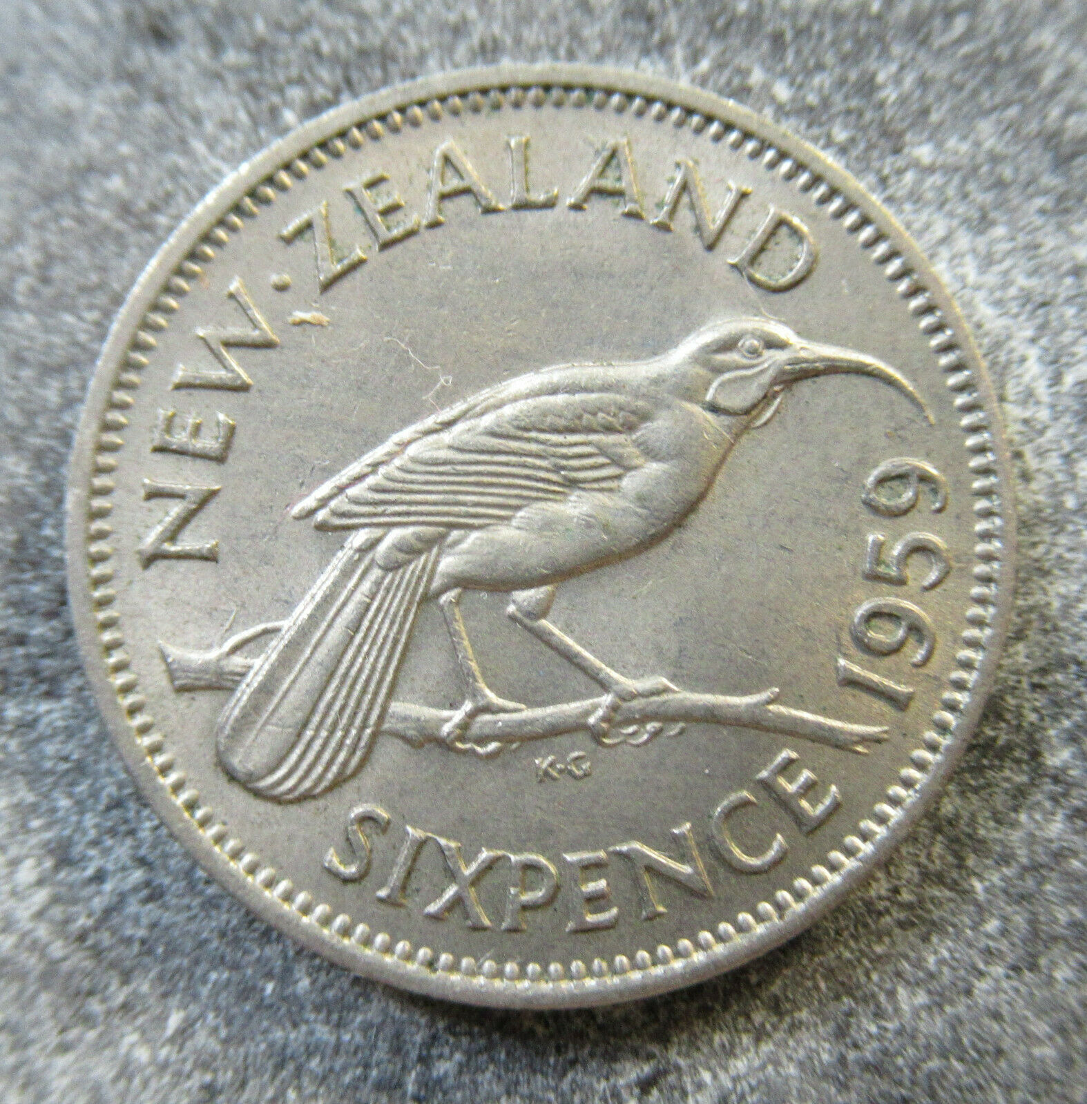 New Zealand 1959 QEII Sixpence 6d Coin Better Detail & Grade aUNC
