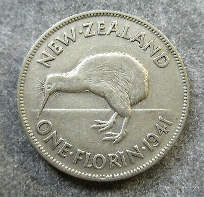 New Zealand 1941 KGVI Kiwi Florin Silver Coin Nice