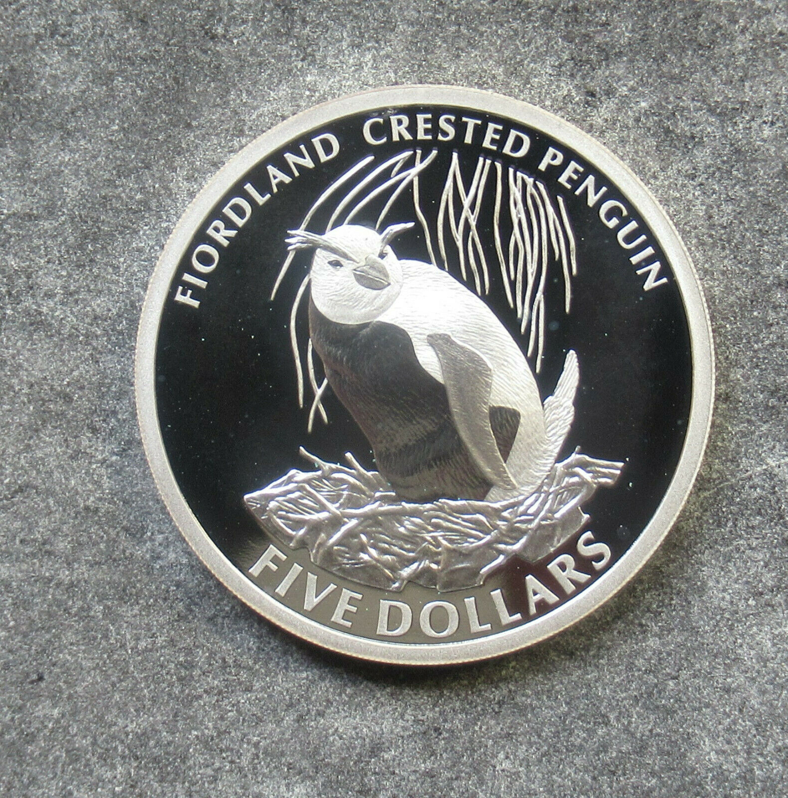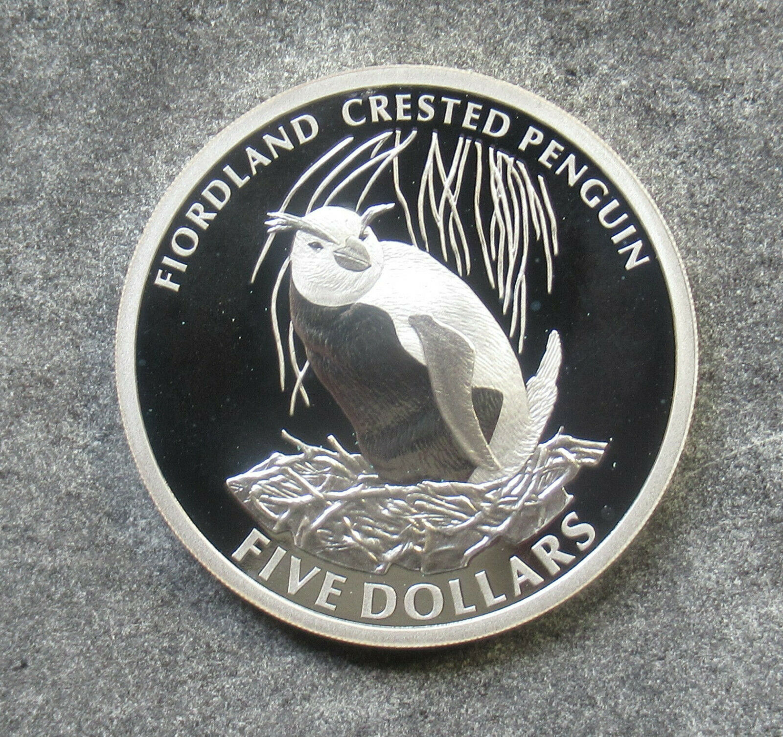 New Zealand 2005 Foordland Crested Penguin $5 Dollar Silver Proof Coin ex Set