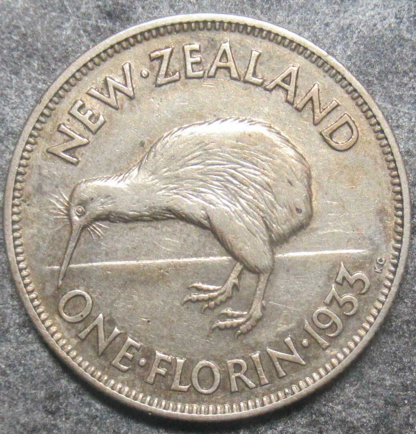New Zealand 1933 KGV Silver Florin Coin good detail