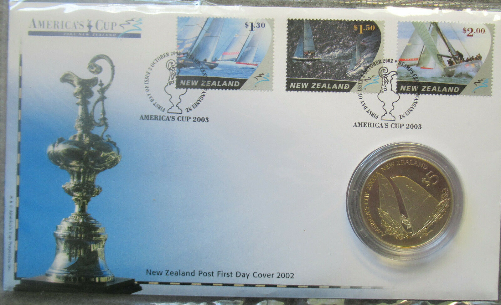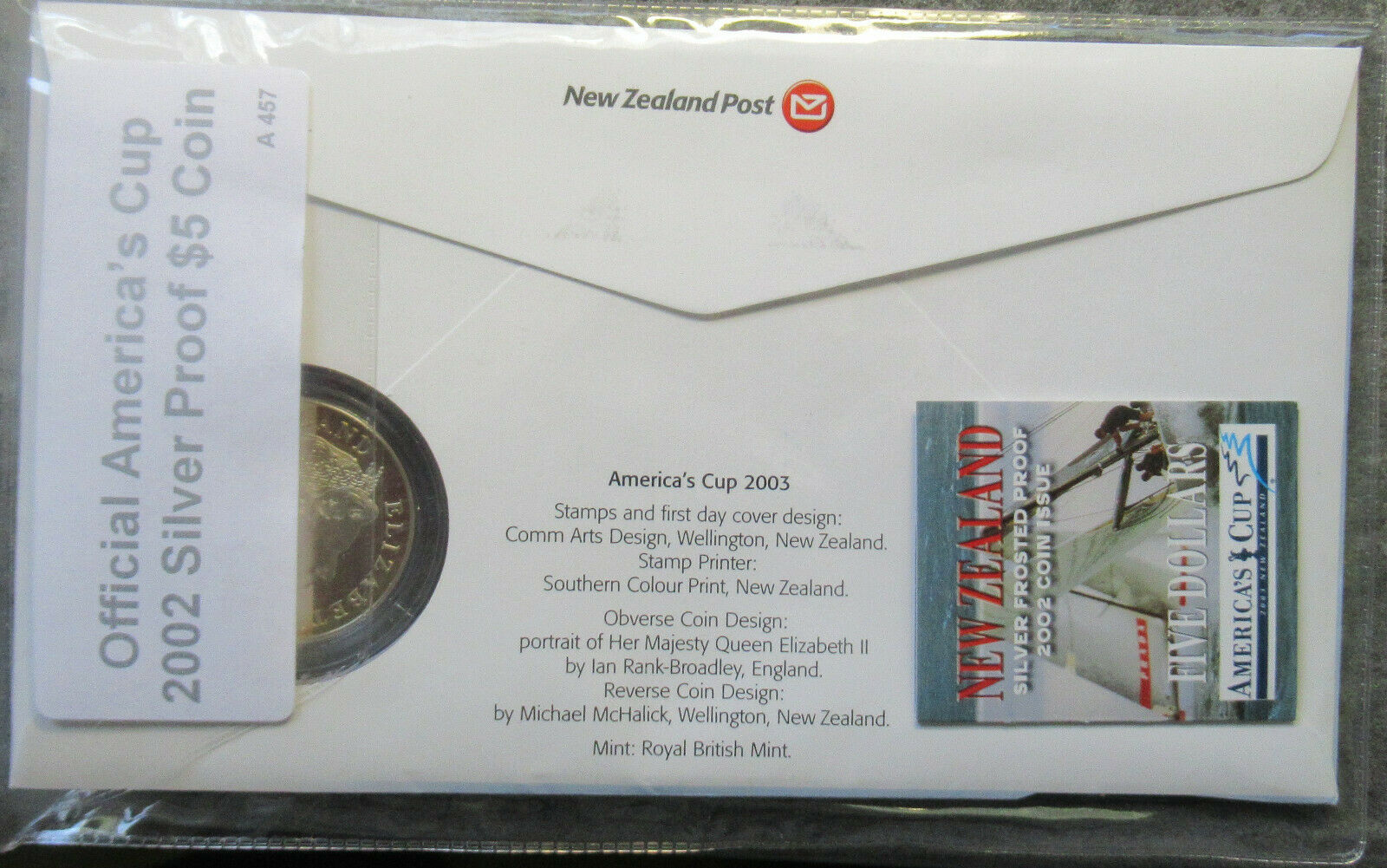 New Zealand 2002 Americas Cup PNC Inc Silver proof $5 tone