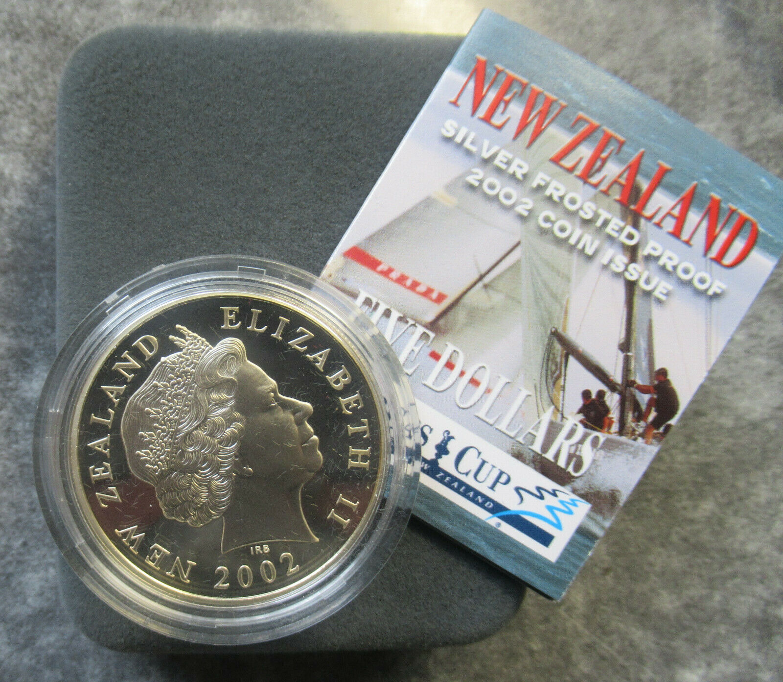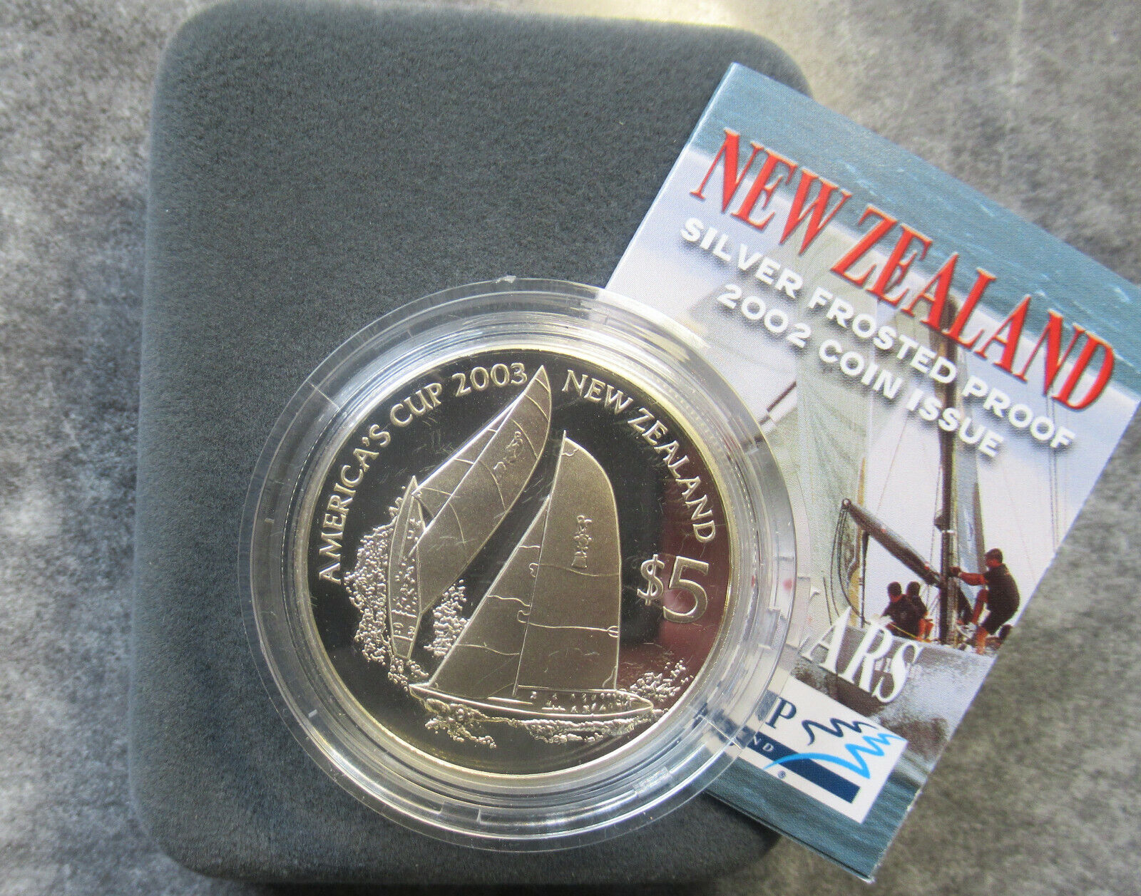 New Zealand 2002 Americas Cup Silver Proof $5 coin Nice
