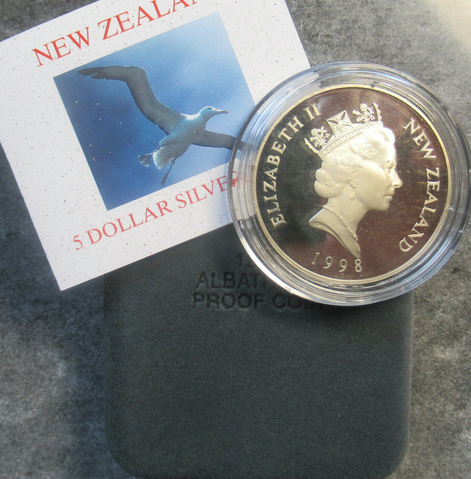 New Zealand 1998 Royal Albatross Bird $5 Dollar Silver Proof Coin