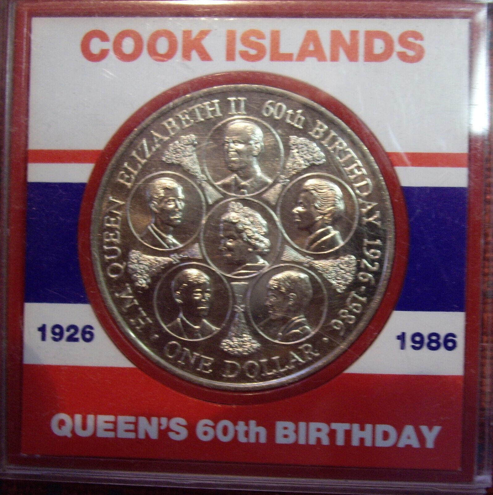 Cook Islands 1986 QEII 60th Birthday One Dollar Coin UNC Cased Crown Size