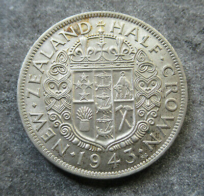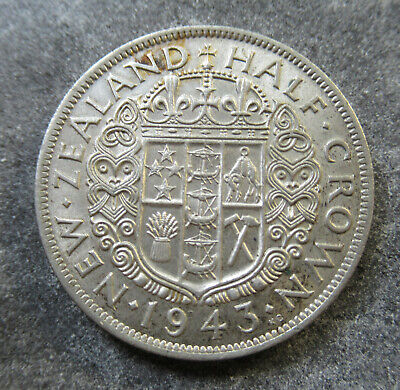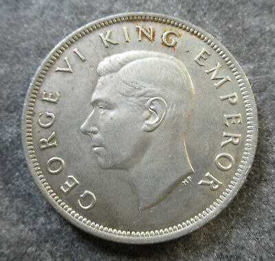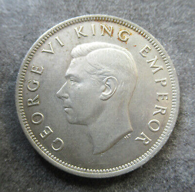 New Zealand 1943 KGVI Half Crown Silver Coin large Part mint lustre