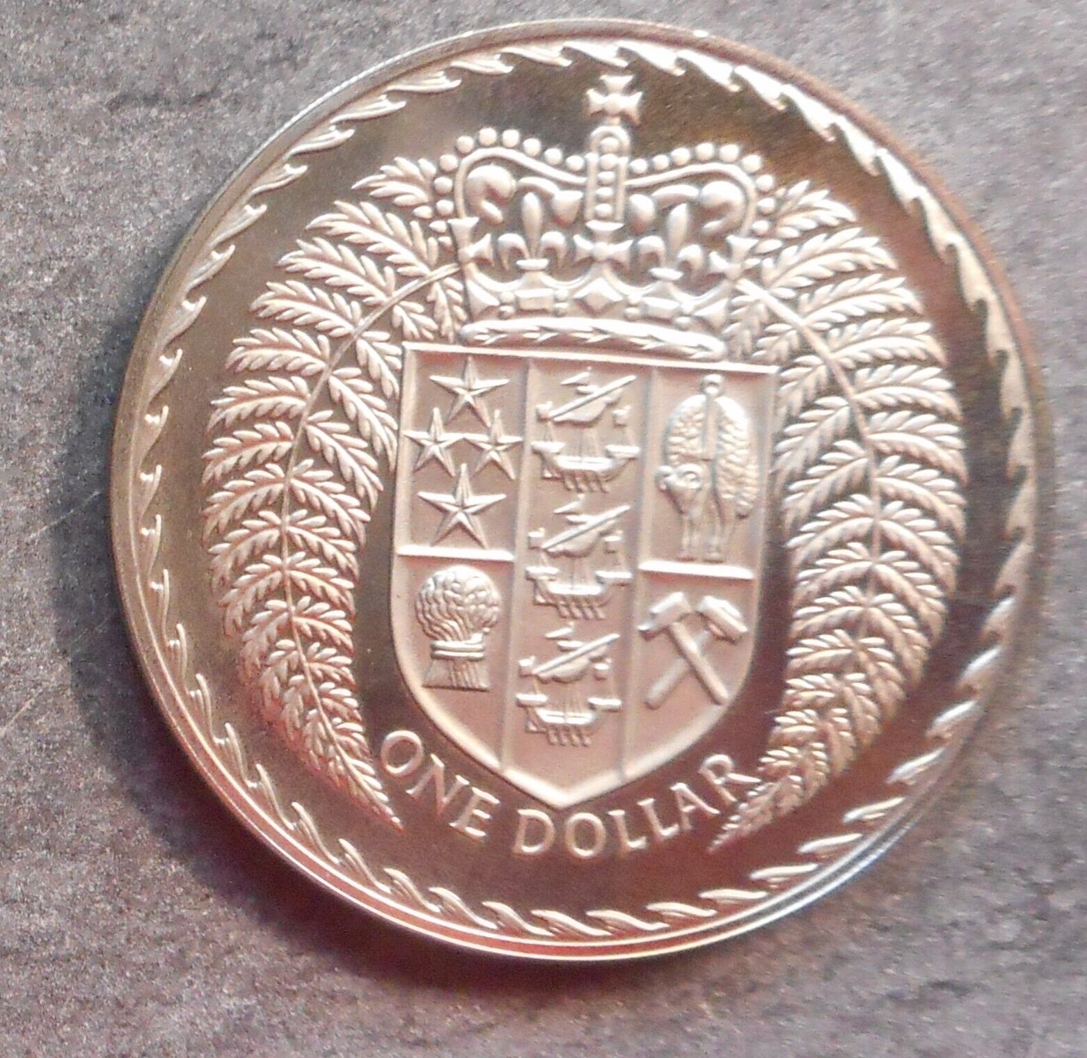 New Zealand 1975 Coat of Arms Fern 1 One Dollar Proof coin