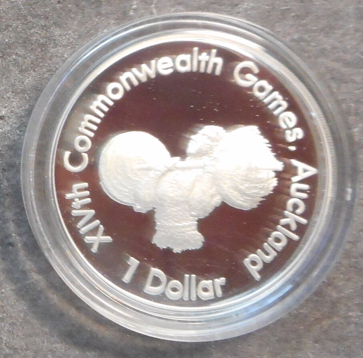 New Zealand 1989 Weighlifting - Games 1 Dollar Silver (.81oz) Proof Coin