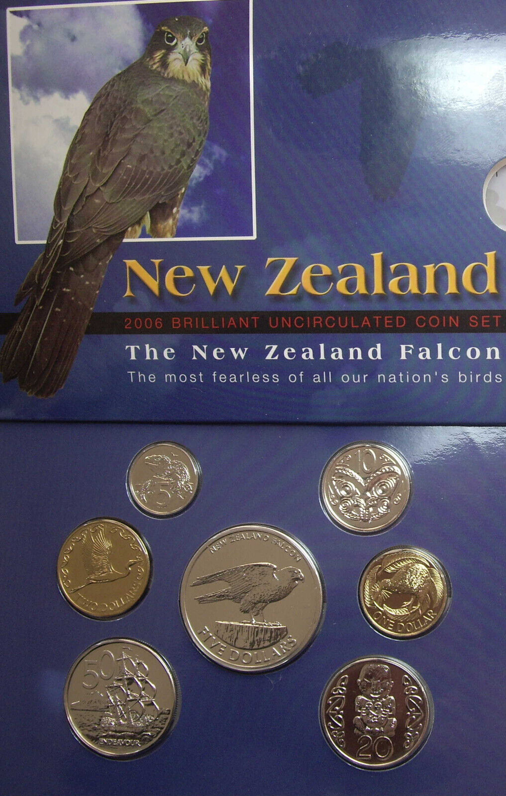 New Zealand 2006 Uncirculated 7 coin Mint Set to $5 Falcon