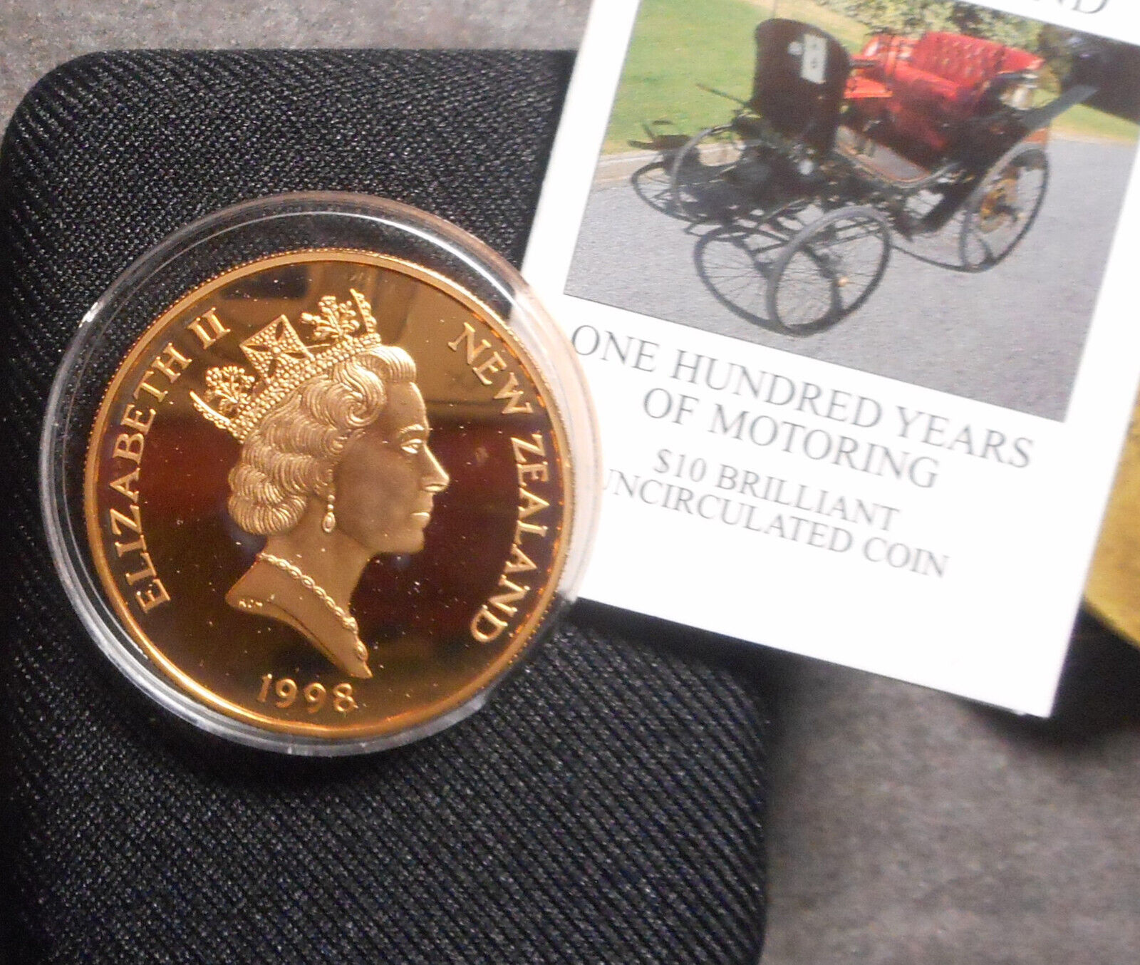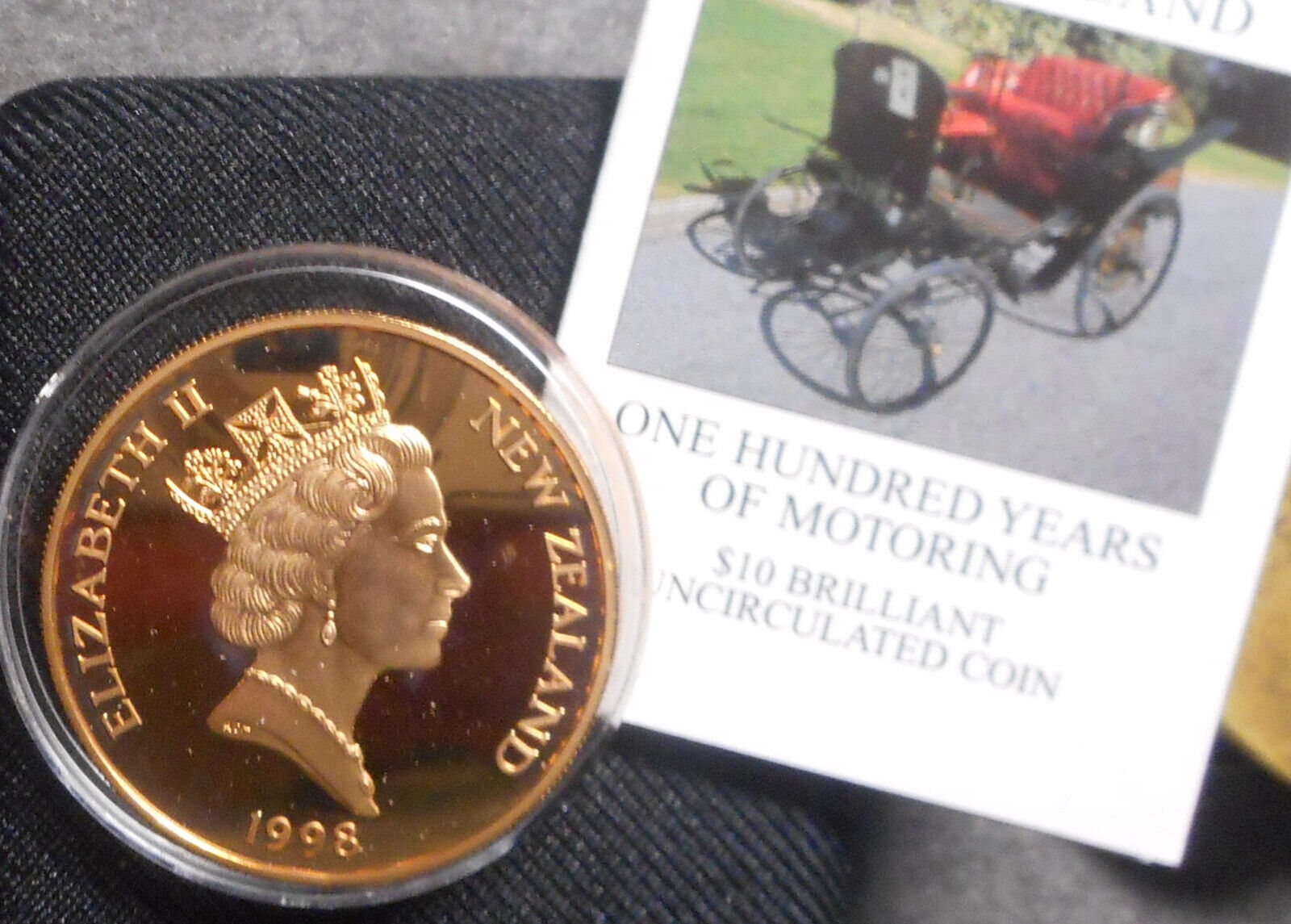New Zealand 1998 One Hundred Years of Motoring $10 Coin UNC Benz
