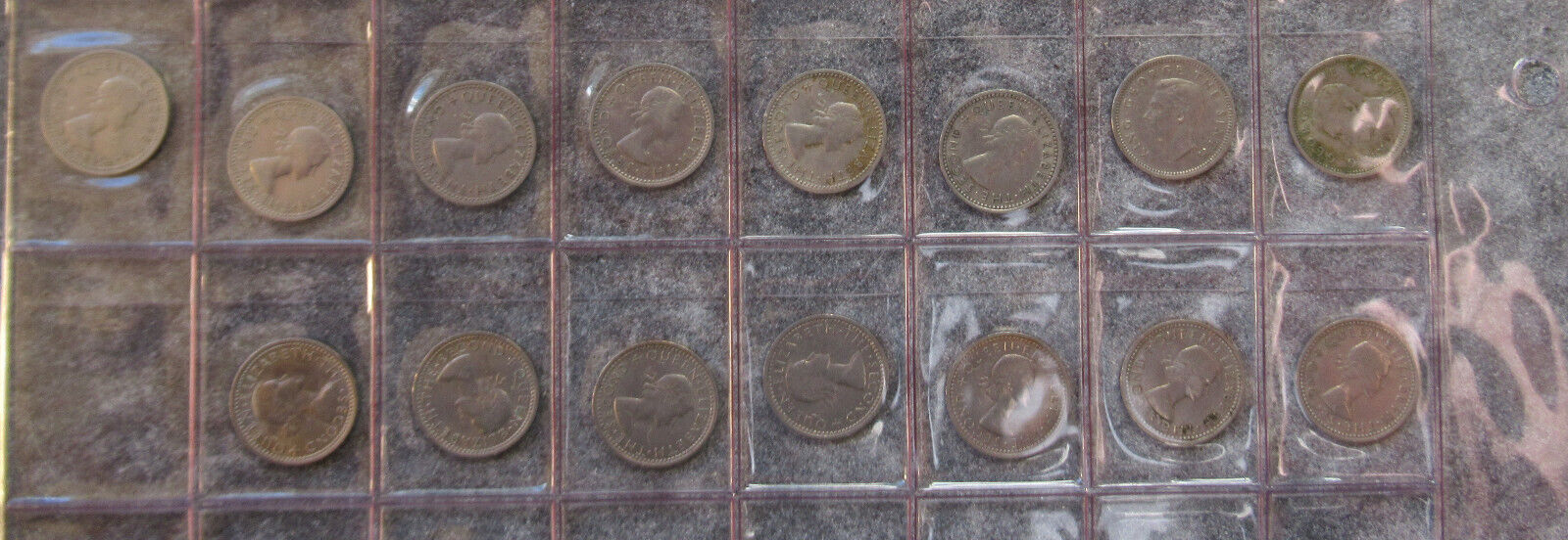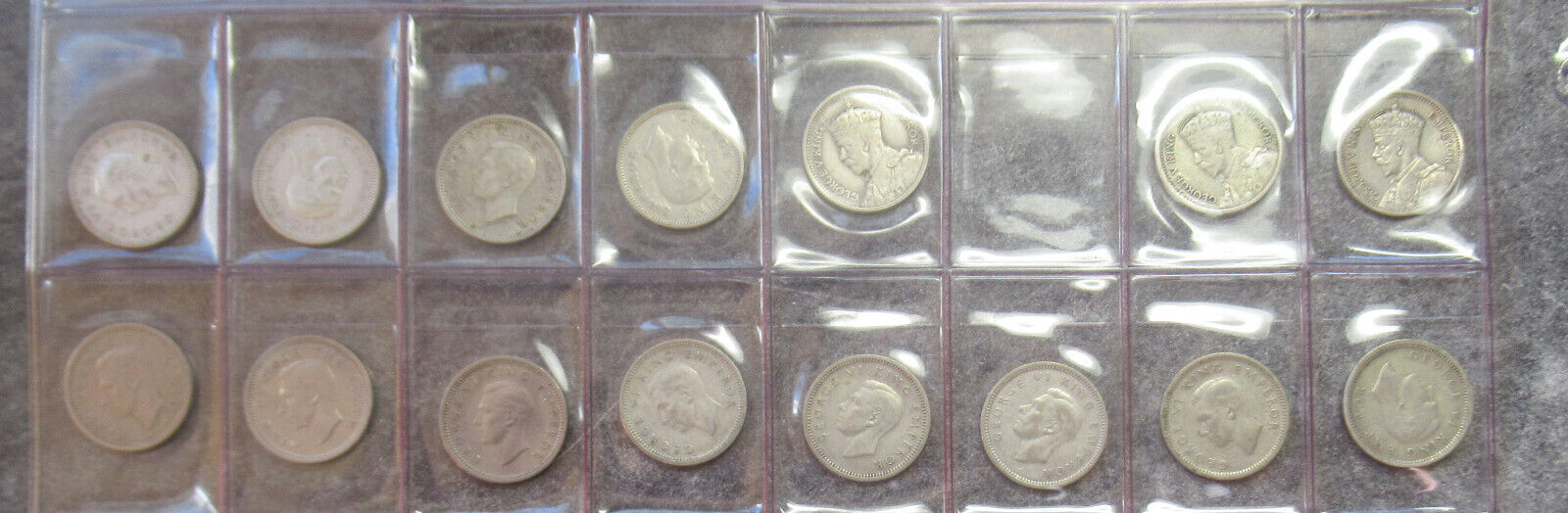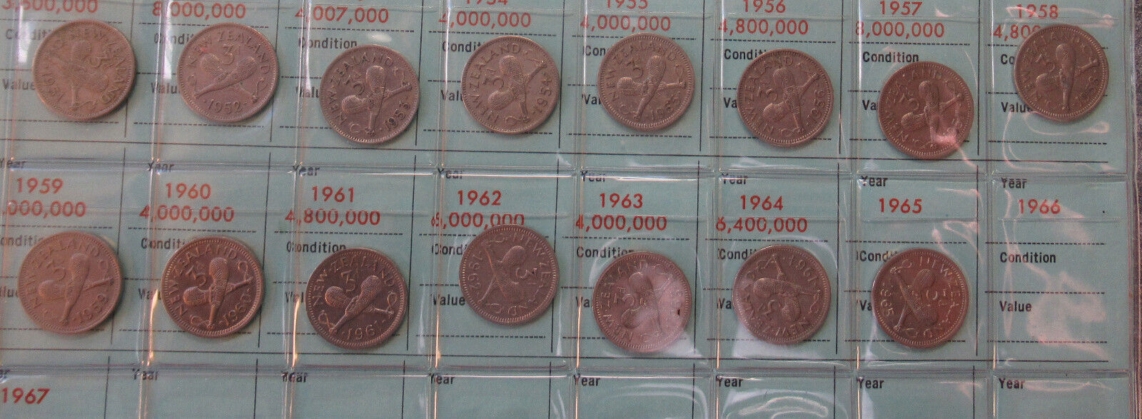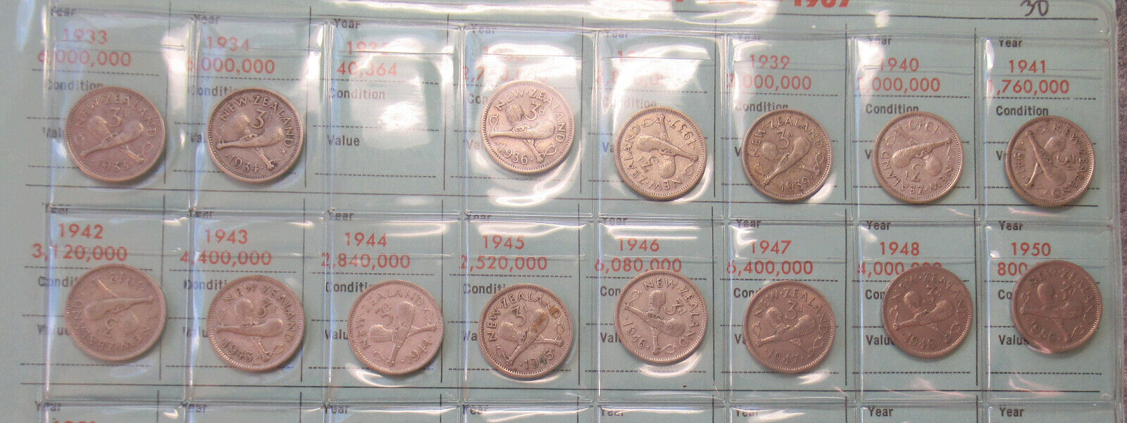 New Zealand 1933 - 1965 Threepence Coin Coin Set 38 coins inc Silver no 1935