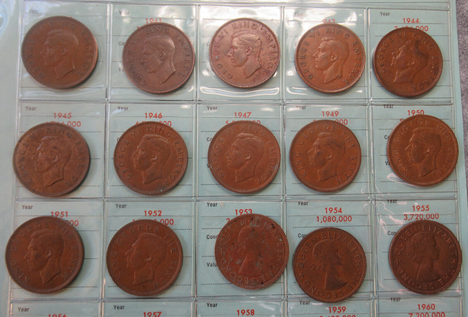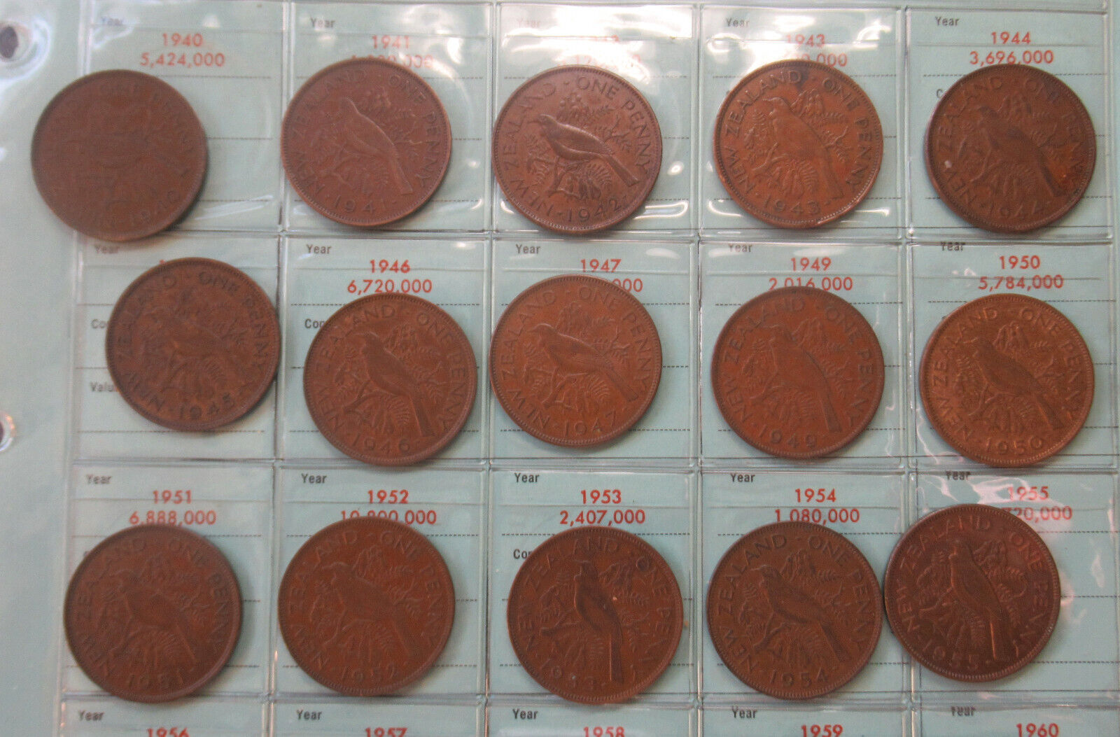 New Zealand 1940- 1965 Penny Coin Coin Set coins comlplete 25