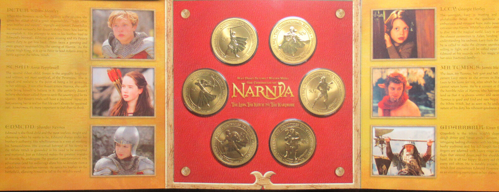 New Zealand 2006 Narnia Aslan Frosted UNC 50 Cent set of 6 Coins Nice