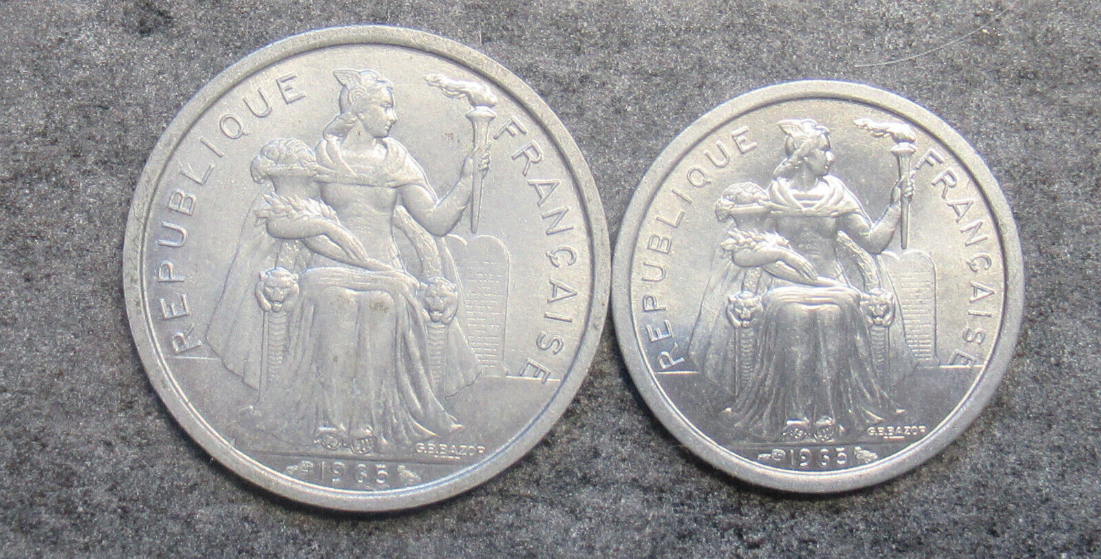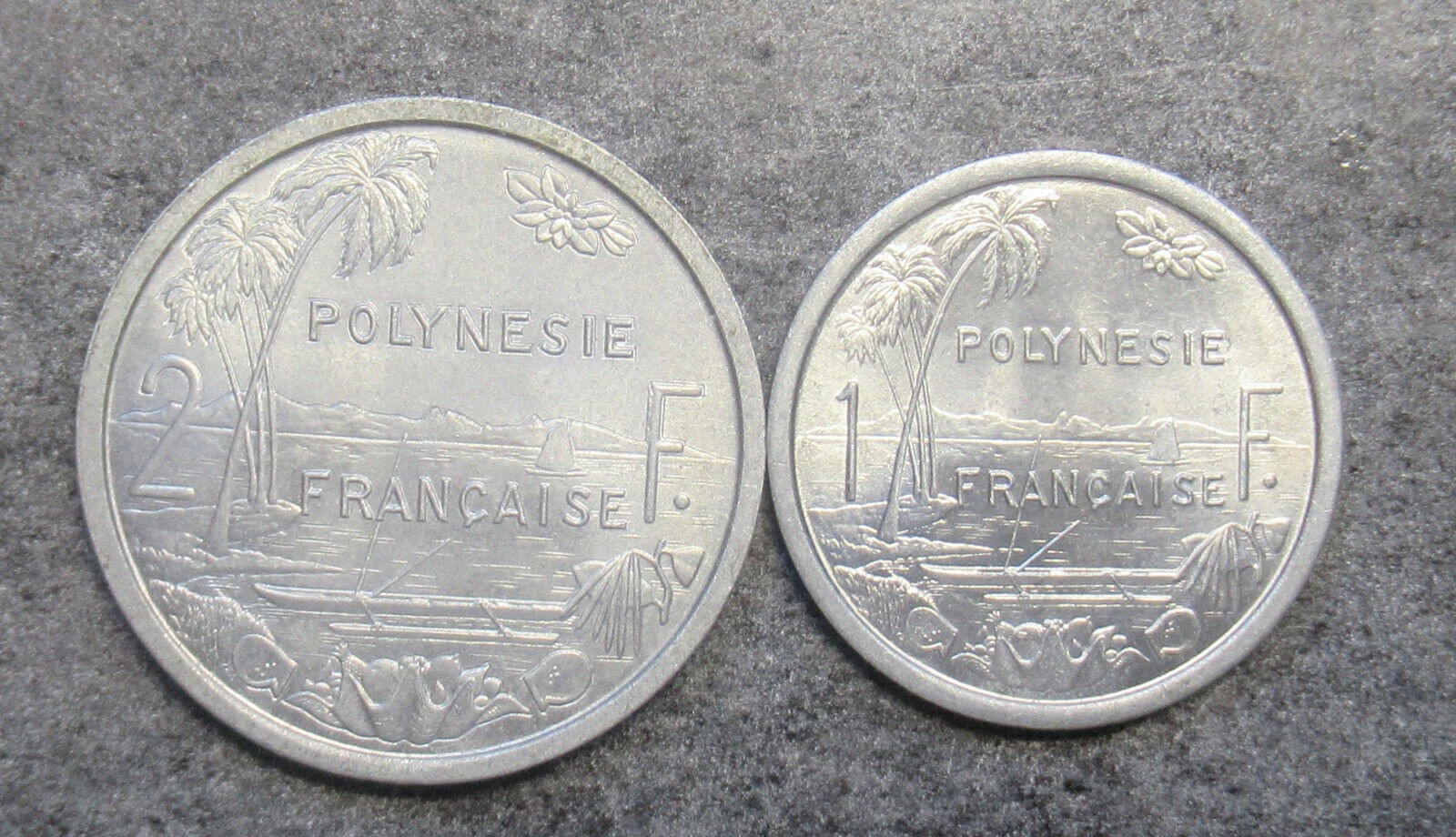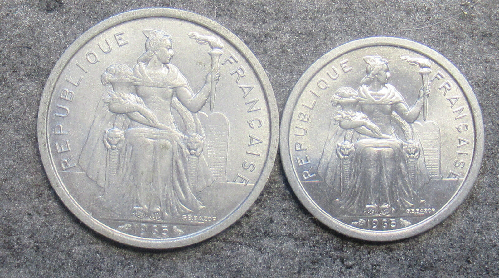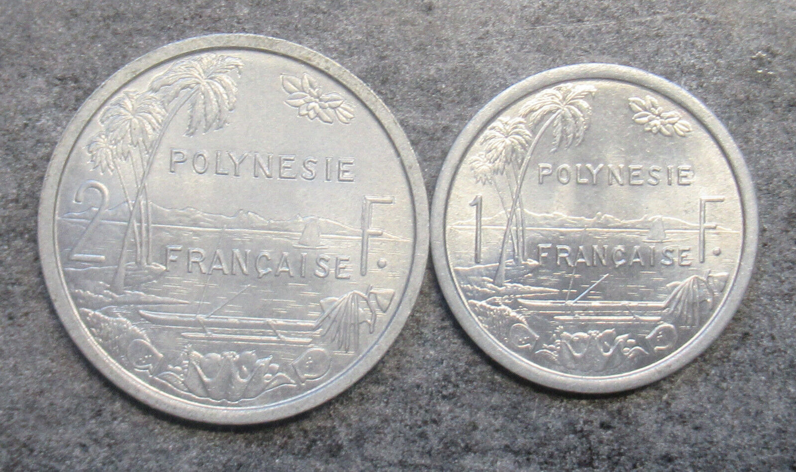 Polynesia 1965 1 Franc 2 Franc Coin High Grade B/UNC