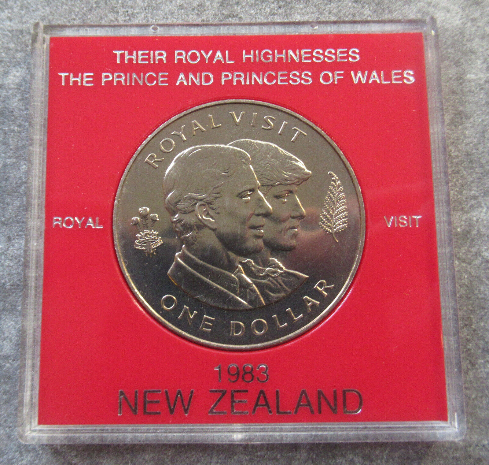 New Zealand 1983 Charles & Diana Royal Visit One Dollar $1 Coin Cased UNC